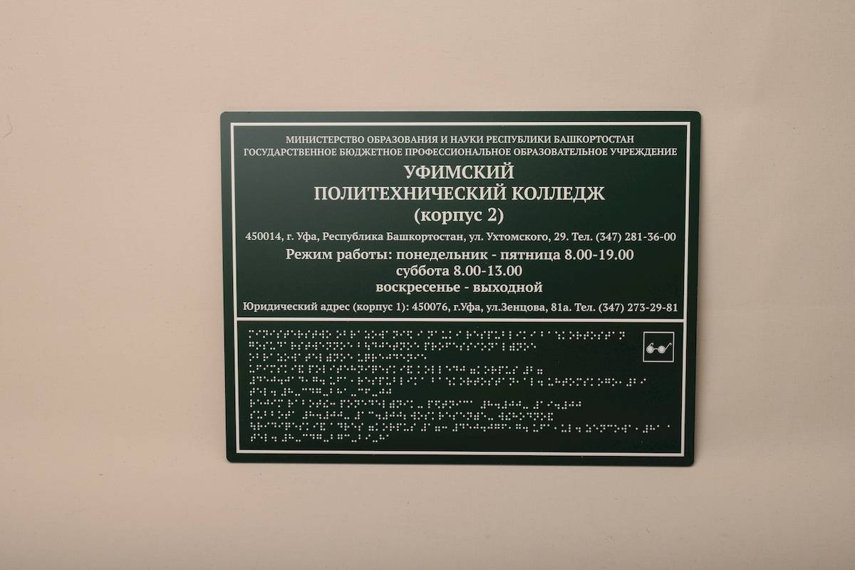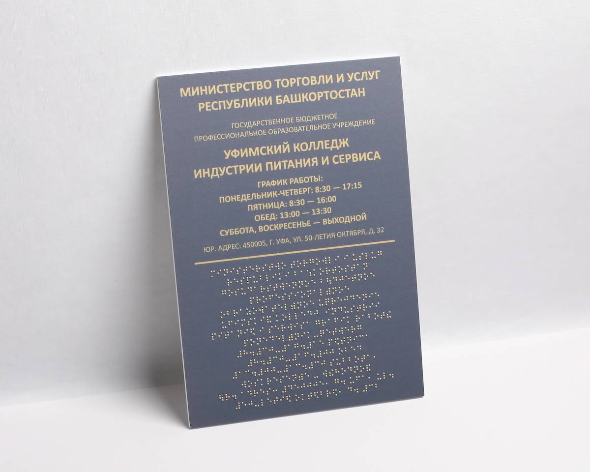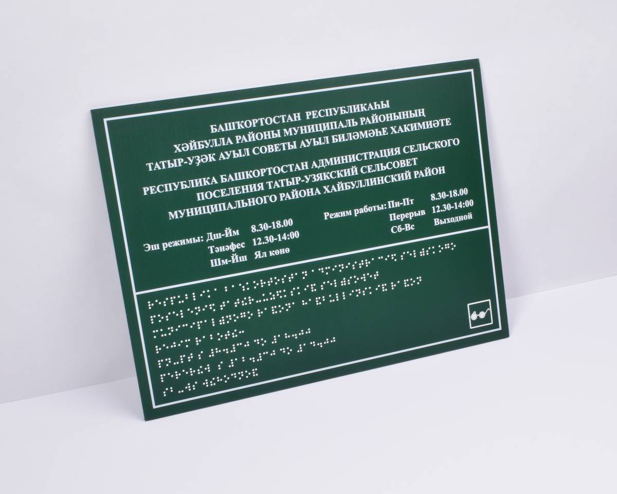 Таблички со шрифтом Брайля в Уфе в компании РГ «МАКСИМУМ»