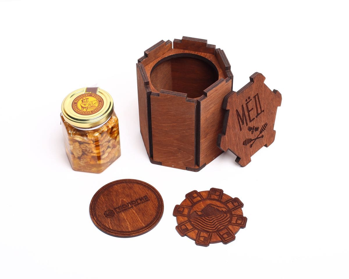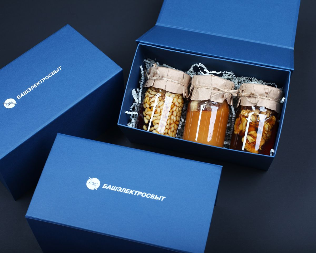 - Готовы подобрать правильную упаковку, нанести логотип или текст (по желанию), оснастить ложементом и добавить дополнительные элементы декора: сизаль, ткань, сухие травы и другие. Также можно добавить душистый чай, ароматный мед и национальные деликатесы.