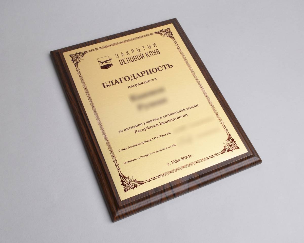 Рекламная Группа «Максимум» — надежный поставщик наградных подарочных плакеток в Уфе. Наградные плакетки — это оригинальный и всегда эффектный, с богатым видом знак признания и благодарности. Дипломы, сертификаты, грамоты, благодарственные письма, выполненные в сочетании с виртуозным дизайном и современными технологиями, придадут награде особый статус и несомненно подчеркнут Ваш вкус и серьезные намерения.
