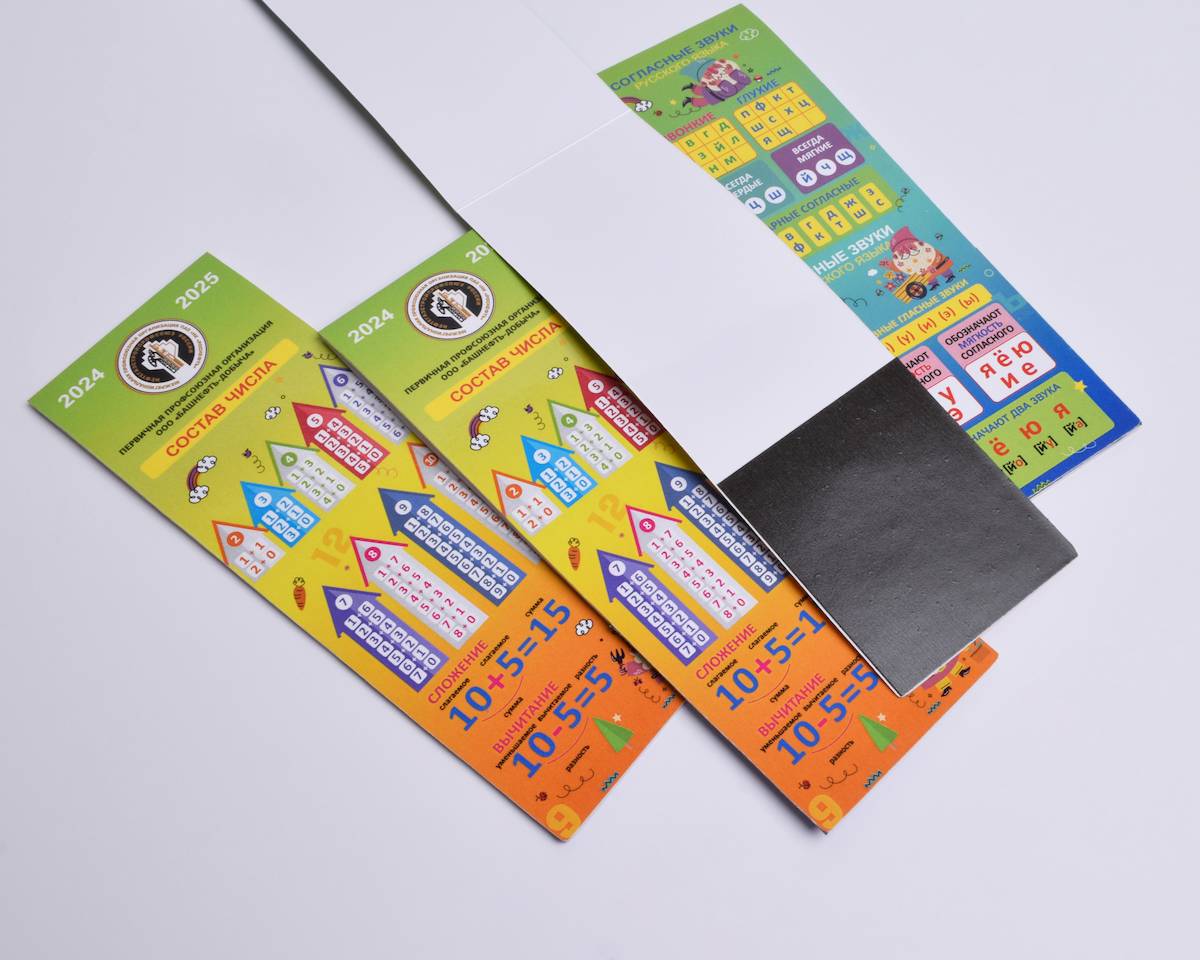 Полиграфические изображения способом УФ печати наносится напрямую на деревянную поверхность, а магнитный виниловый слой надежно приклеиваются экологически безопасным клеем.