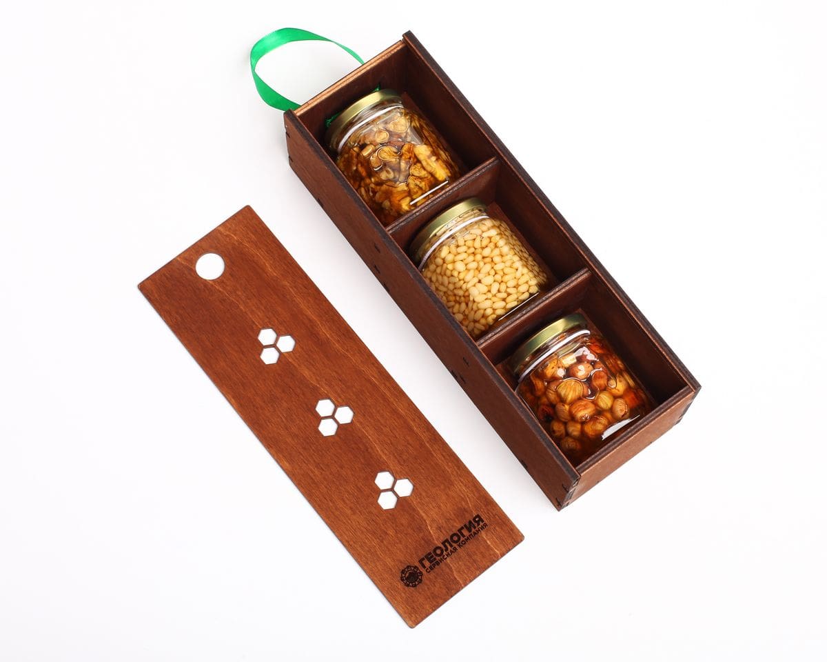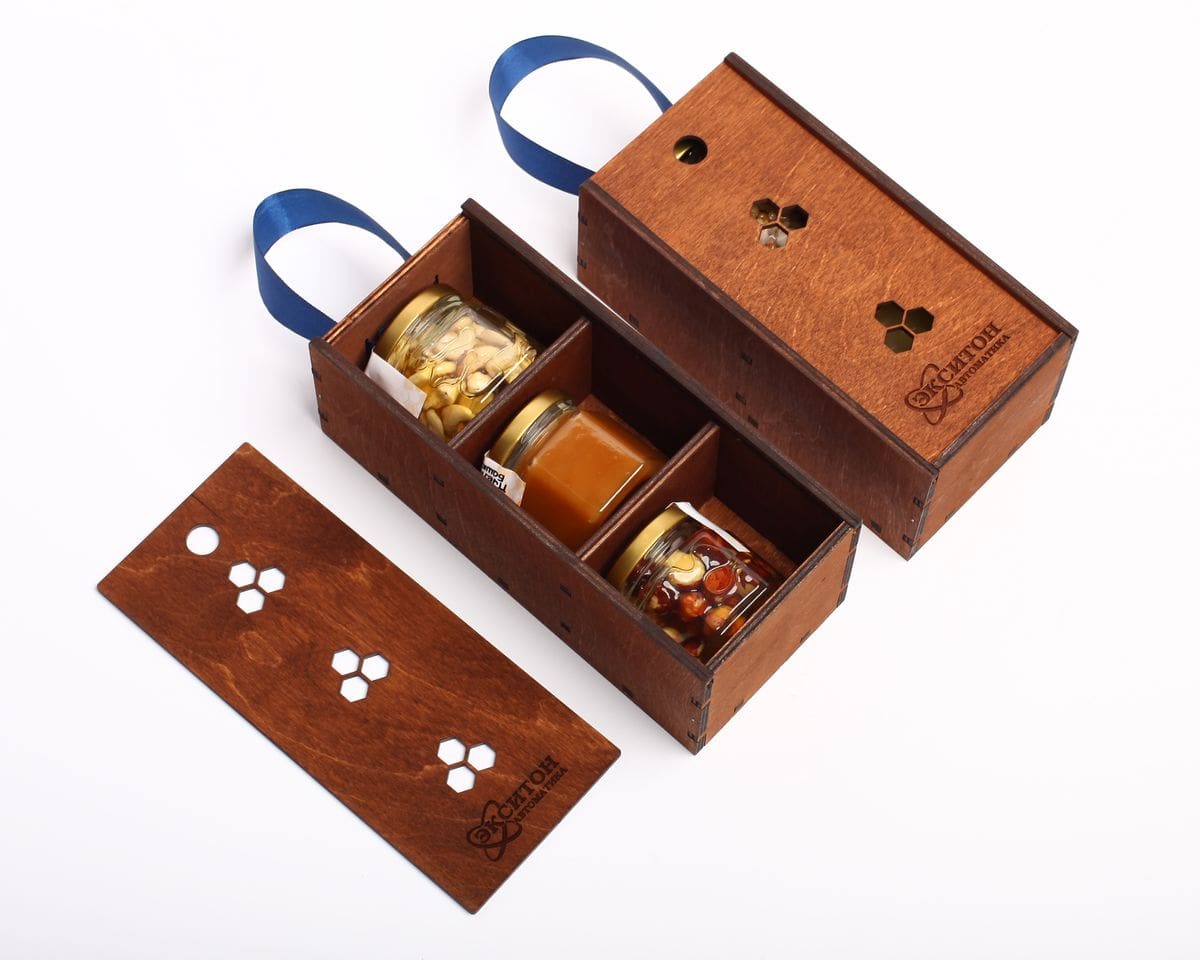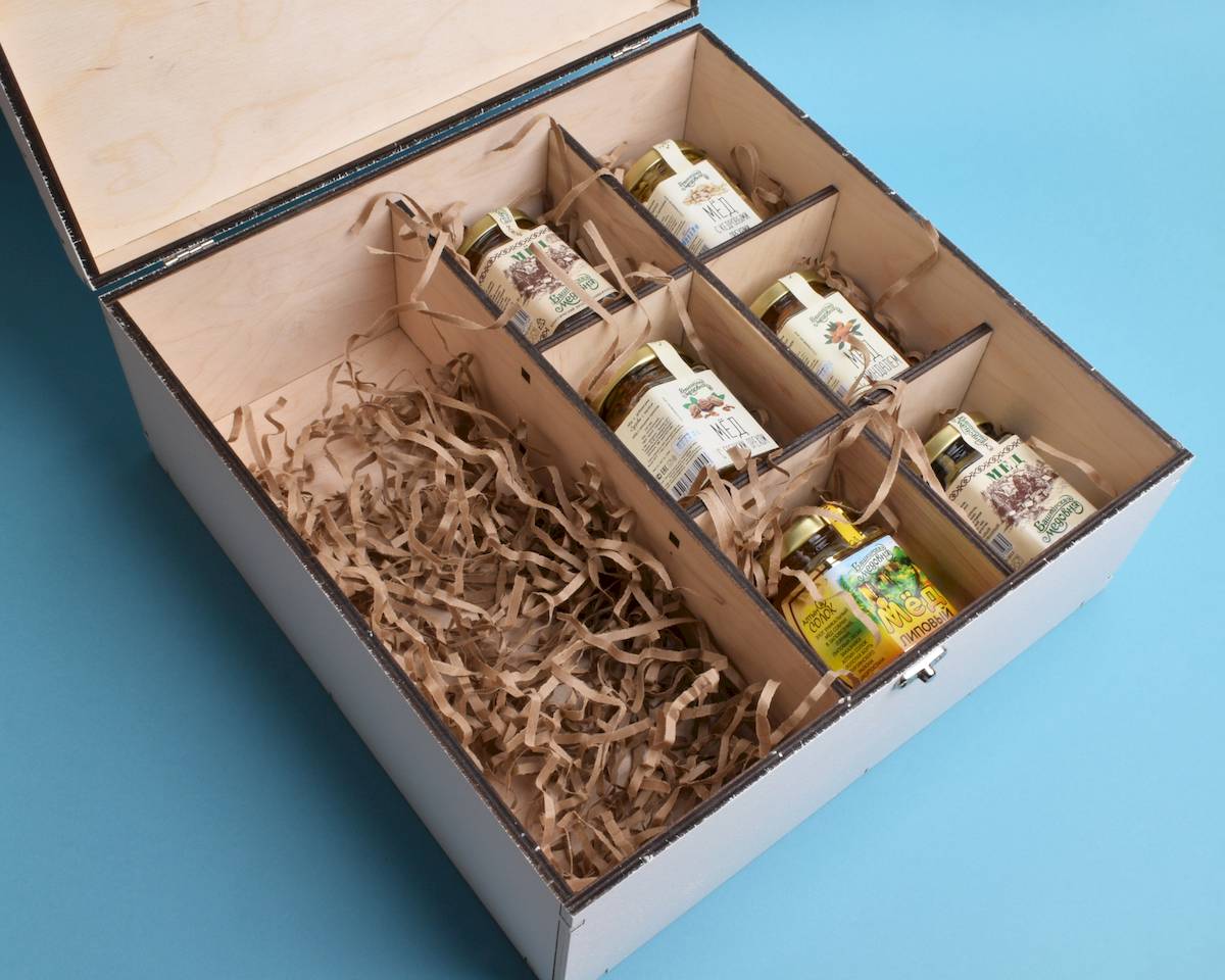 - Готовы подобрать правильную упаковку, нанести логотип или текст (по желанию), оснастить ложементом и добавить дополнительные элементы декора: сизаль, ткань, сухие травы и другие. Также можно добавить душистый чай, ароматный мед и национальные деликатесы.